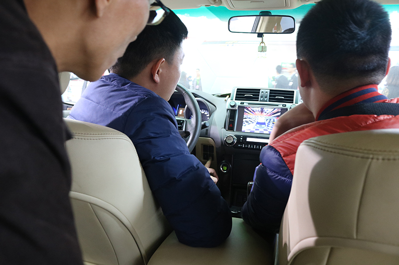 道可視這次展會主推的超清360度全景影像系統(tǒng),其清晰度達(dá)到1080P。不僅僅是清晰度的提升,更解決了因?yàn)橐挂暷芰Σ蛔愣_車主的夜間泊車、倒車難題;四路攝像頭實(shí)時(shí)錄像,智能震動(dòng)鎖定技術(shù),3D全景泊車,24小時(shí)不間斷泊車監(jiān)控等功能吸引了一大批客商的駐足參觀,在展車體驗(yàn)過程中對我們?nèi)诵曰腢I交互設(shè)計(jì)和便捷的功能操作贊賞有加。