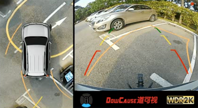 道可視360°全景行車輔助系統(tǒng)能夠通過“倒車影像”+“精準(zhǔn)輔助線”的方式,幫助用戶準(zhǔn)確入庫,避免事故。