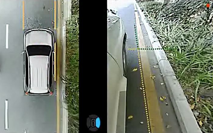 針對這一場景,道可視的“停靠路崖模式”在倒車檔模式下開啟雙閃時,會將車身兩側(cè)(整個車身、前后輪、踏板等)同時顯示,以這種近場垂直的鳥瞰圖顯示方式,配合安全參考線(與車身距離為20CM),有效的解決了??柯费聲r可能對輪胎及輪轂造成刮傷的問題。
