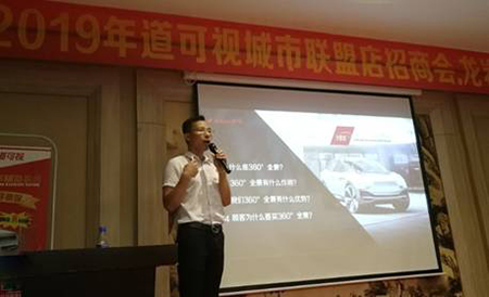 為了進一步幫助終端門店運營者實現(xiàn)更好的銷售,掌握更強大門店運營技能,在本次會議現(xiàn)場,道可視代理商負責人陳經(jīng)理便為現(xiàn)場來賓做了產(chǎn)品培訓及銷售手冊講解,分別從消除視野盲區(qū)、更可靠安全駕駛輔助等眾多層面闡述了360°全景產(chǎn)品的優(yōu)勢特色!